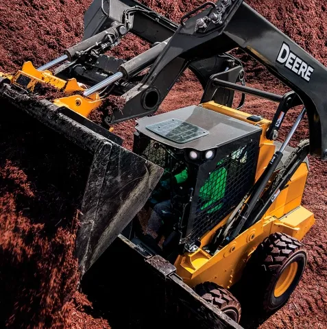 Компания John Deere, специализирующаяся на производстве лесозаготовительной, сельскохозяйственной и дорожно-строительной техники, выпустила новые модели мини-погрузчиков под индексами 330G, 331G, 332G и 333G. К колесным погрузчикам относятся модели 330G и 332G, к гусеничным – 331G и 333G. Все машины оснащаются вертикальной системой подъема. Высоту выгрузки у мини-погрузчиков увеличили до 3,3 метров, что позволяет использовать их при работе с самосвалами, бункерами и другими транспортировочными средствами.