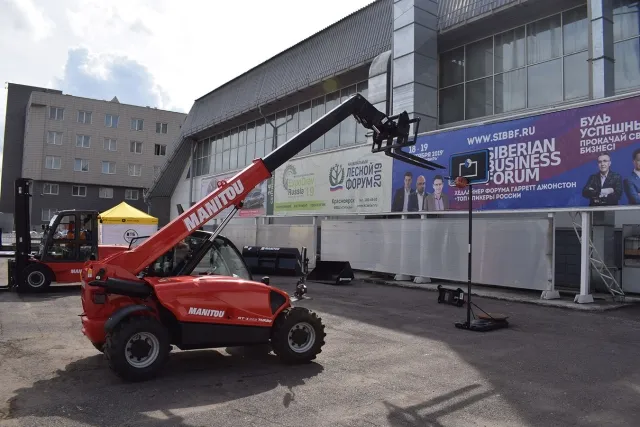 На специальной площадке наши сотрудники продемонстрировали возможности складской и промышленной техники Manitou.