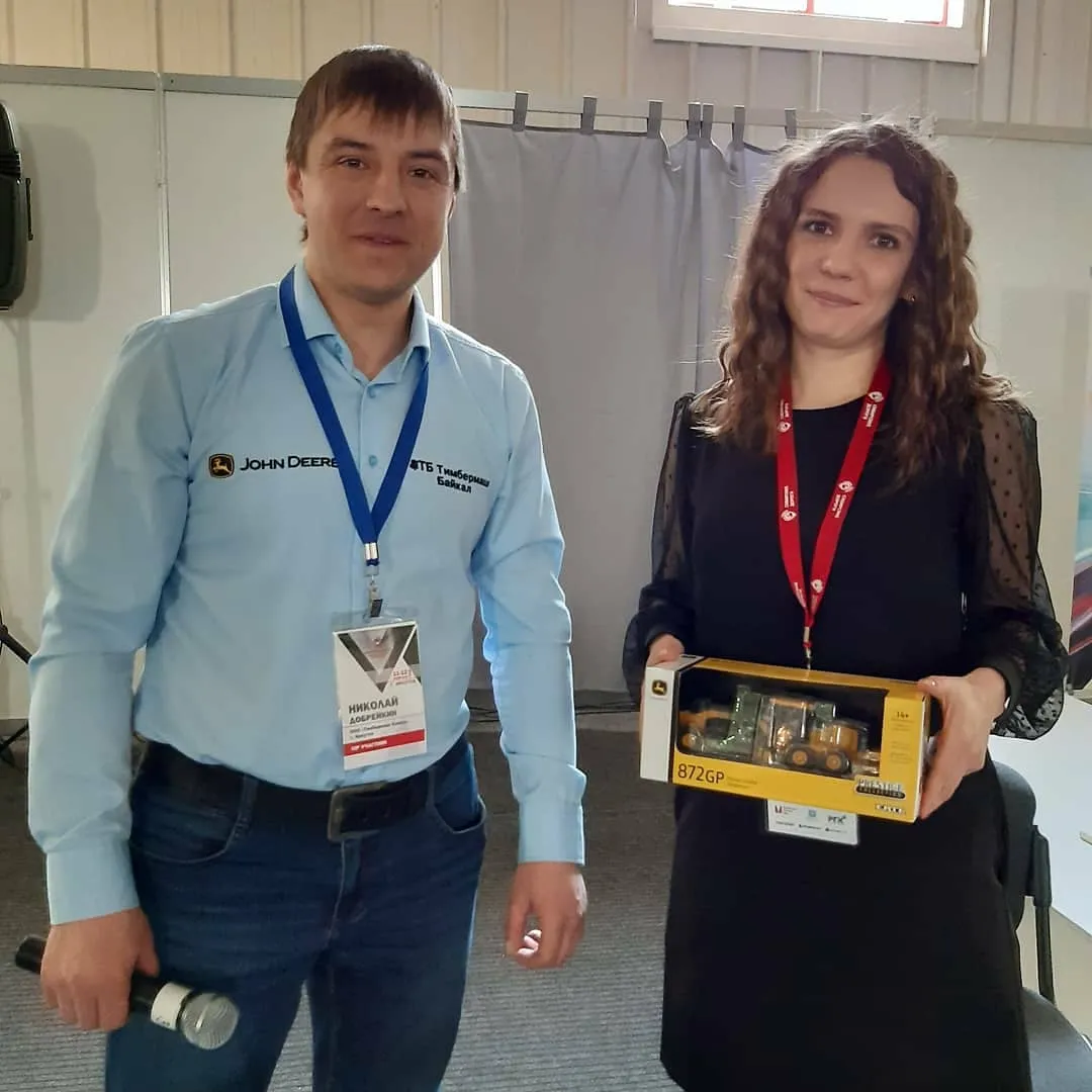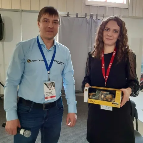 Не обошлось и без подарков. Участники выставки получили фирменные сувениры John Deere, а в конце мероприятия был разыгран главный приз – миниатюрная модель автогрейдера 872GP.